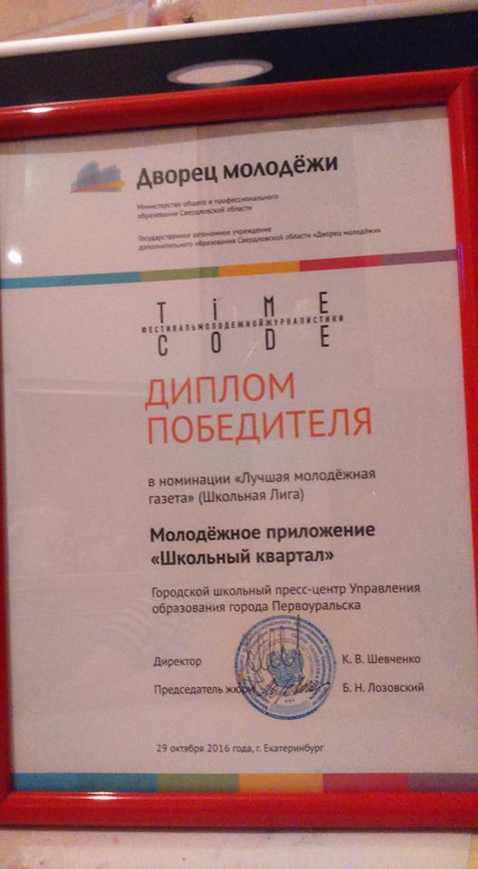 городской школьный пресс-центр Управления образования ГО Первоуральск и члена городского пресс-центра, ученицу 9б класса нашей школы Фризоргер Веронику
