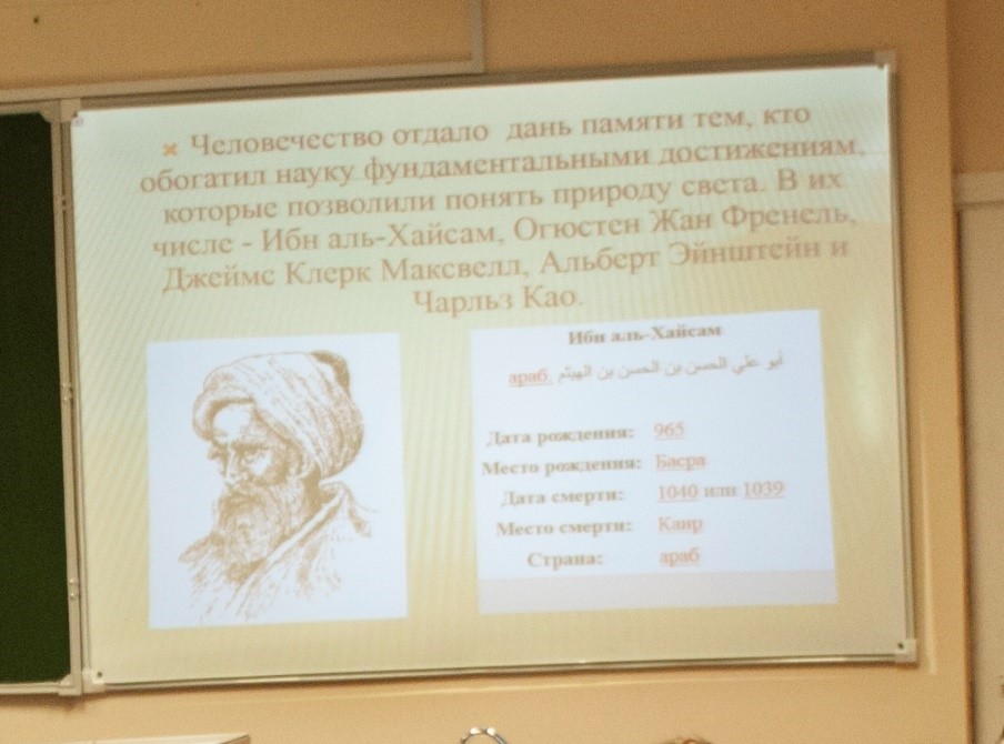 15 декабря 2015 года был проведен Единый классный час приуроченный к объявленному Генеральной ассамблеей ООН Международному году света и световых технологий – «Свет в нашей жизни».